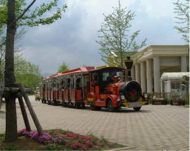 スカイロードを走る列車。40名くらい乗れる。1時間おきくらい。