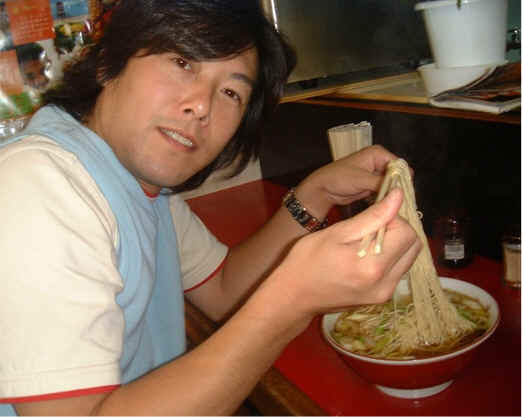 珍達そばを食べる宮本。珍達そば、おいしかったです。
