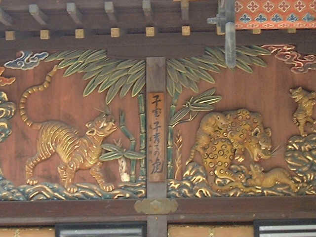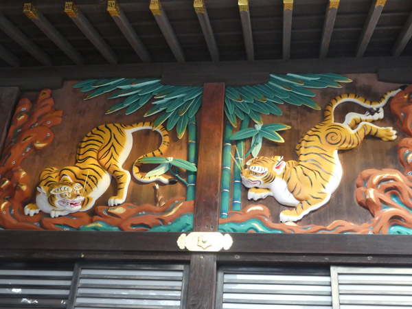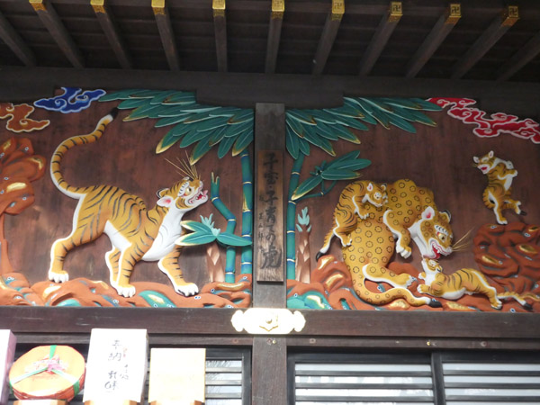 秩父神社の前面に左甚五郎作の虎の彫刻があります。