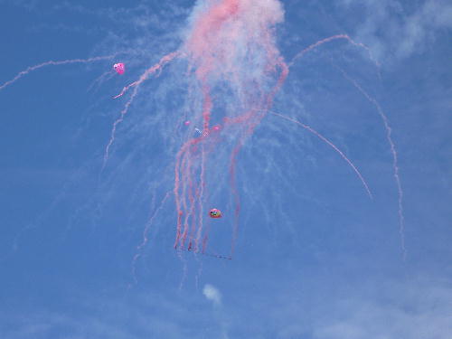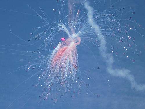 打ち上げ後、しかけ花火というのかな。パラシュートとかでます。