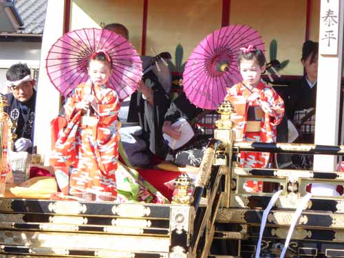 中町屋台 絵日傘 3才と4才。