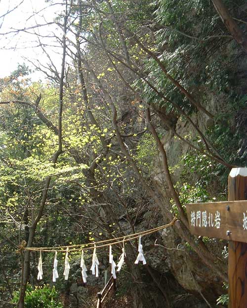 将門隠れ岩。平将門が隠れていたといわれる岩場です。