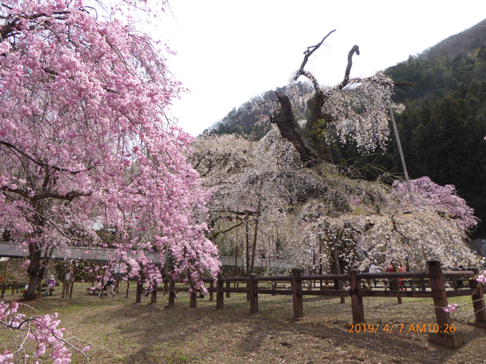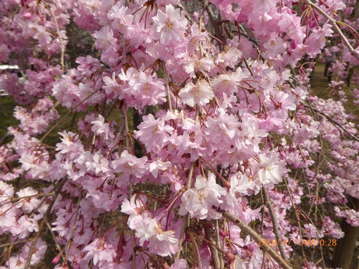 遅咲きのピンクのしだれ桜が綺麗でした。