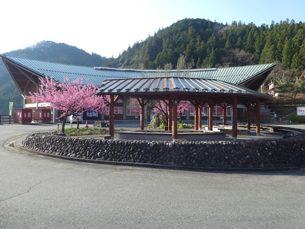 手前が足湯で、後ろは温泉施設